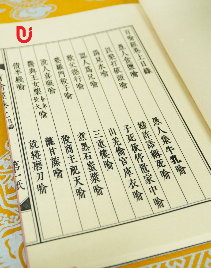 Bách Dụ Kinh chia 2 phần thượng, hạ, gồm tổng cộng 98 câu chuyện của Phật kể cho năm trăm người Phạm Chí do Ngài Tôn Giả Tăng Già Tư Na sao lục trong kinh tạng. Trong kinh Bách Dụ, Phật đã dùng những chuyện xưa để thí dụ cụ thể sự dại dột mê lầm chung của chúng ta như: Người ngu ăn muối, Khoanh tay chịu đòn, Giả chết dối chồng, Khát không uống nước,… Những câu chuyện ngụ ngôn có ngộ nghĩnh, có khôi hài, có bi thảm, khi cạn thấp, khi cao sâu, do Ðức Phật kể ra, đầy vẻ giáo lý và giáo pháp cho tăng đồ và hội chúng. Sau mỗi câu chuyện là mỗi bài học để con người nhìn vào đó mà hiểu rõ bản chất của cuộc sống, sáng trí mà sống và hành xử cho đúng.