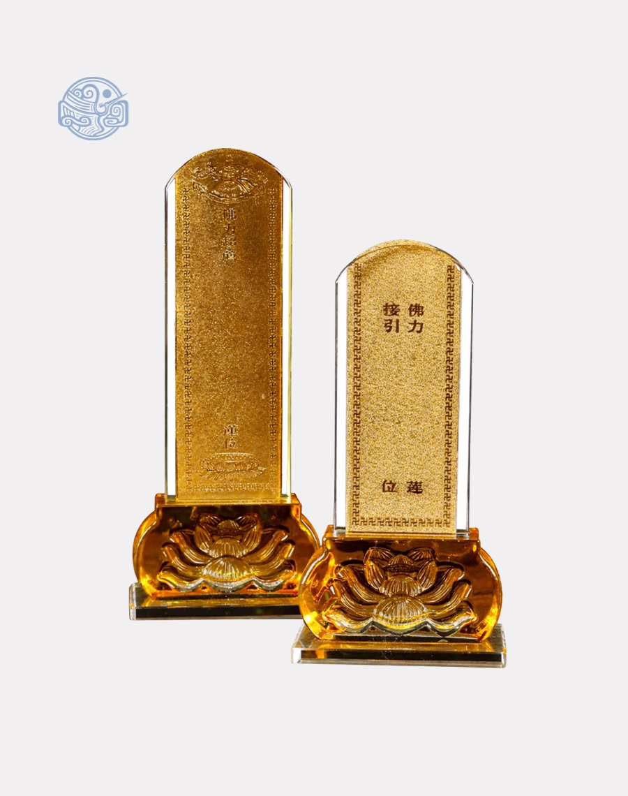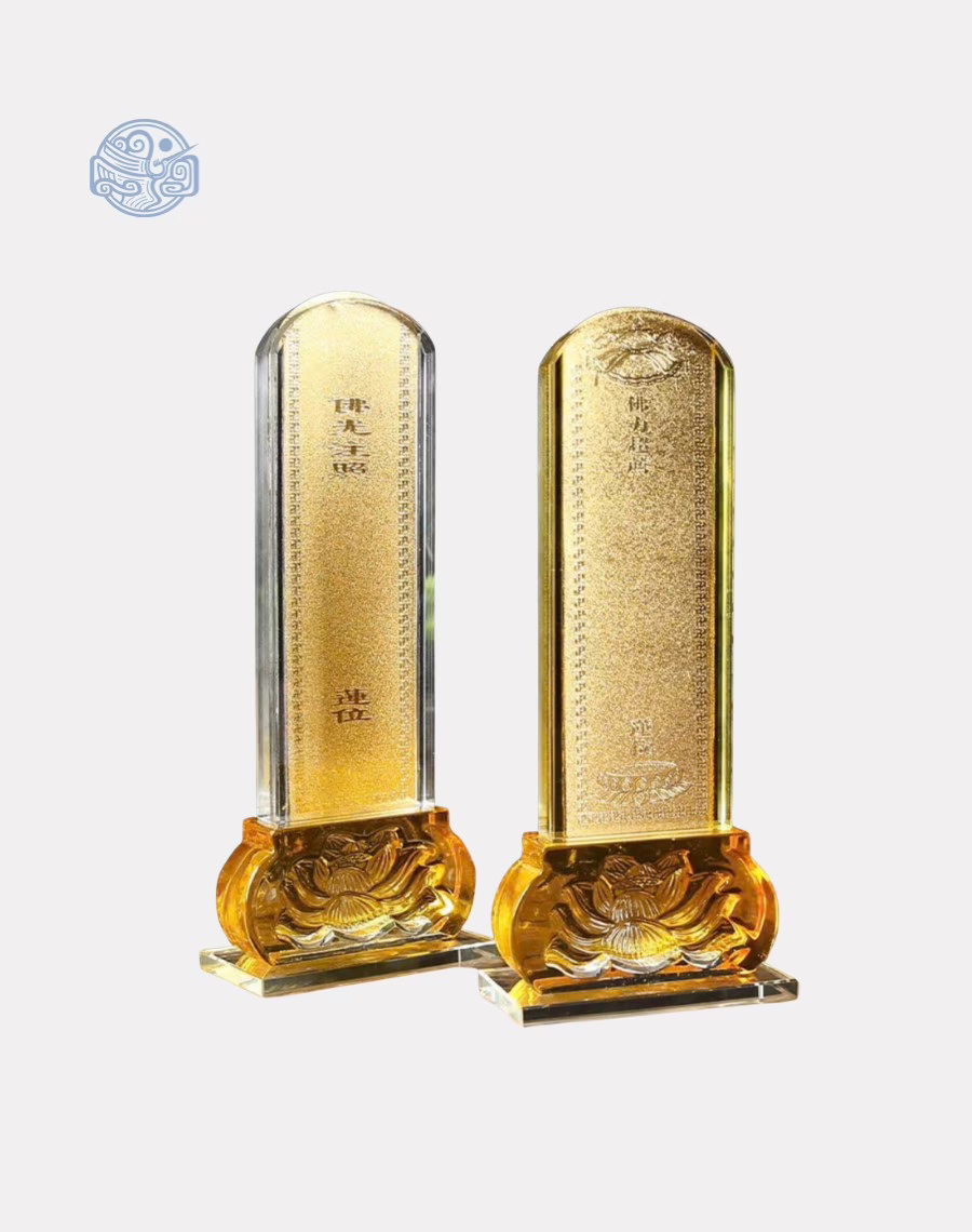 Bài vị lưu ly là vật phẩm tâm linh được sử dụng phổ biến trong tủ bài vị tại các chùa, điện thờ và tháp Phật để ghi danh hương linh, gia tiên, hoặc Phật tử quá vãng. Với chất liệu lưu ly vàng trong suốt, bài vị vừa thể hiện sự thanh tịnh, trang nghiêm vừa mang năng lượng tâm linh tích cực, giúp an định hương linh và tạo phước cho gia đình người thỉnh.