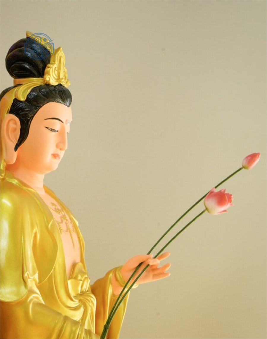 - Hình dáng: Tượng đứng tự tại đài sen, đế bát giác
