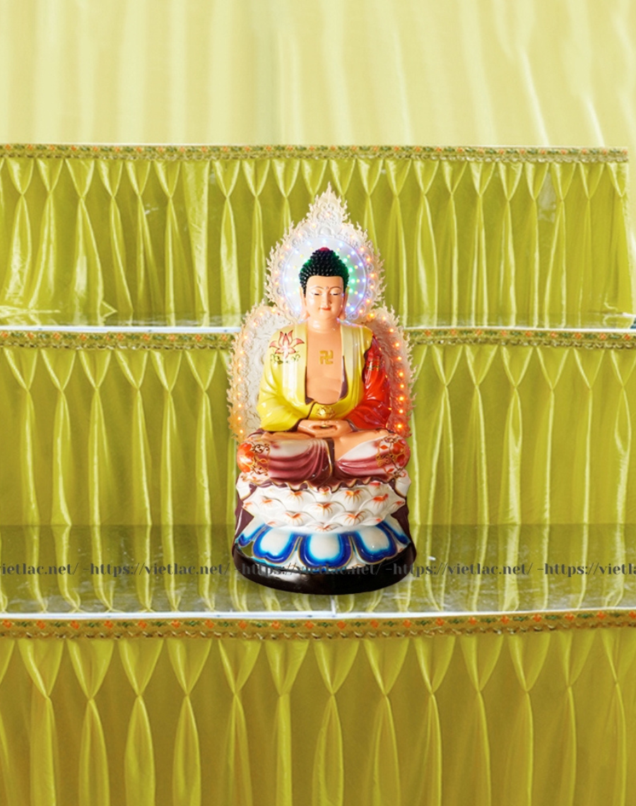 - Hình dáng: Tượng ngồi ngự tại đài sen