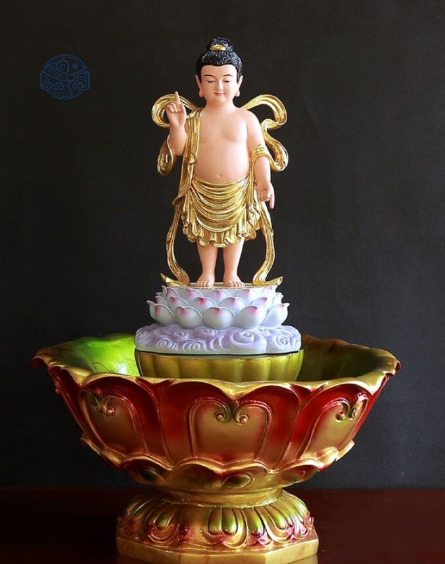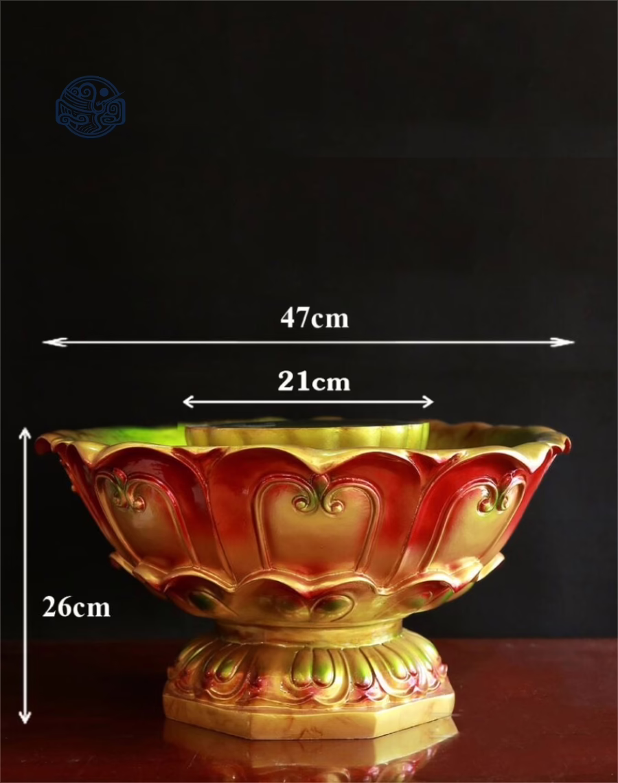 - Chậu mô phỏng hình hoa sen tỏa dưới chân Phật.