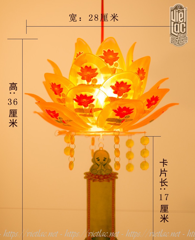 - Một dây đèn bao gồm 10 bông sen, có sẵn thiệp và bóng đèn