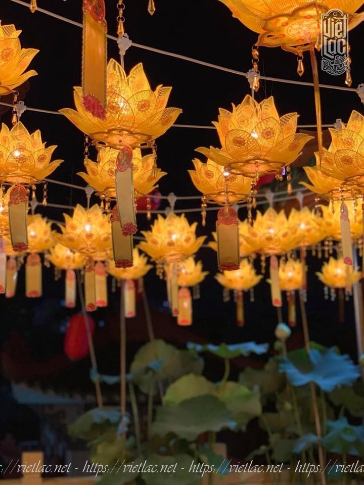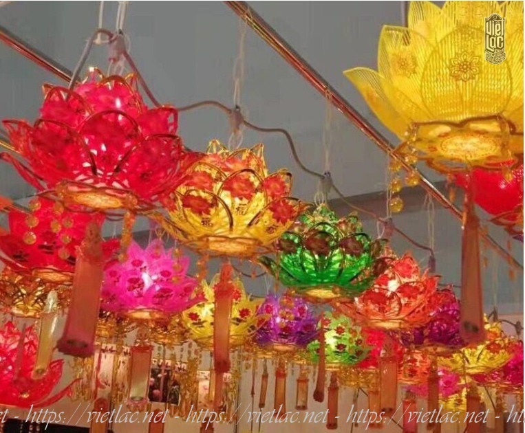 - Đèn sen vừa có thể thắp sáng vừa dùng để trang trí ngoài trời tại những nơi trang nghiêm như đình, chùa, điện,…