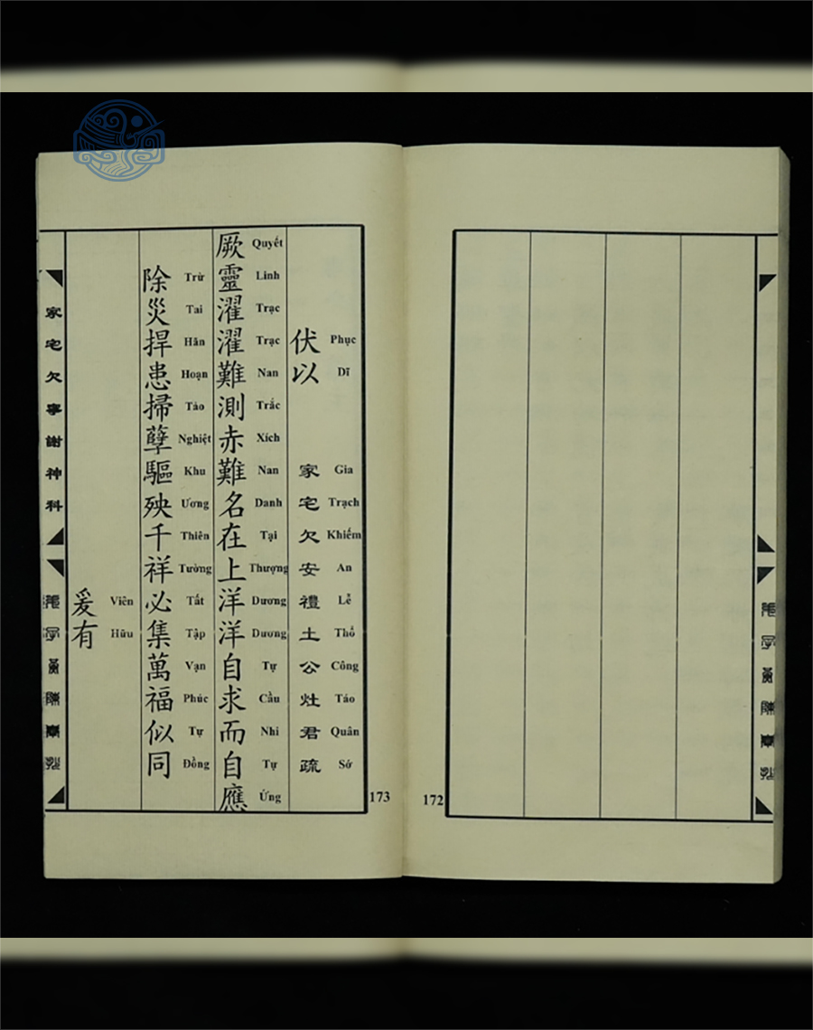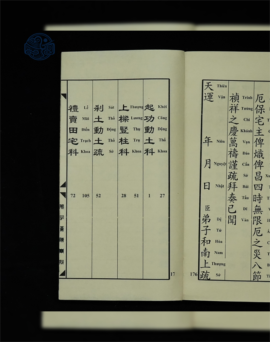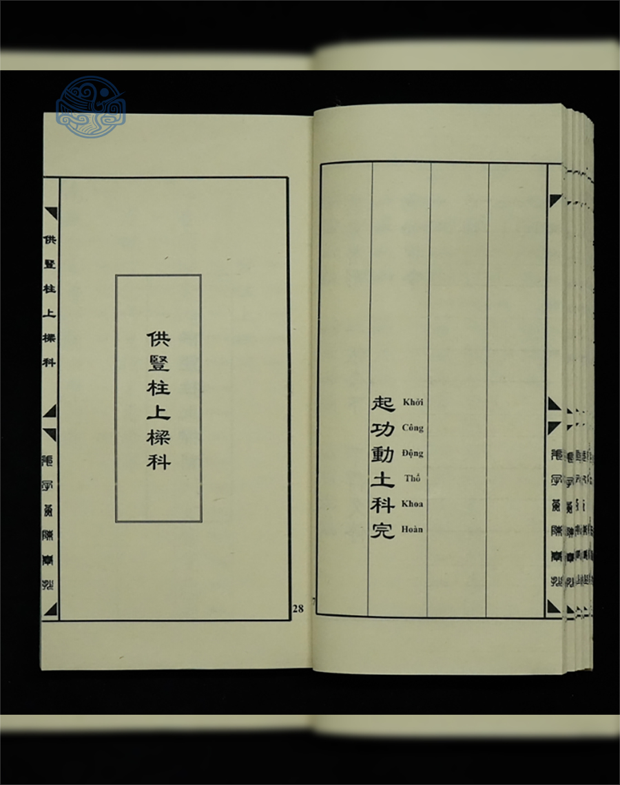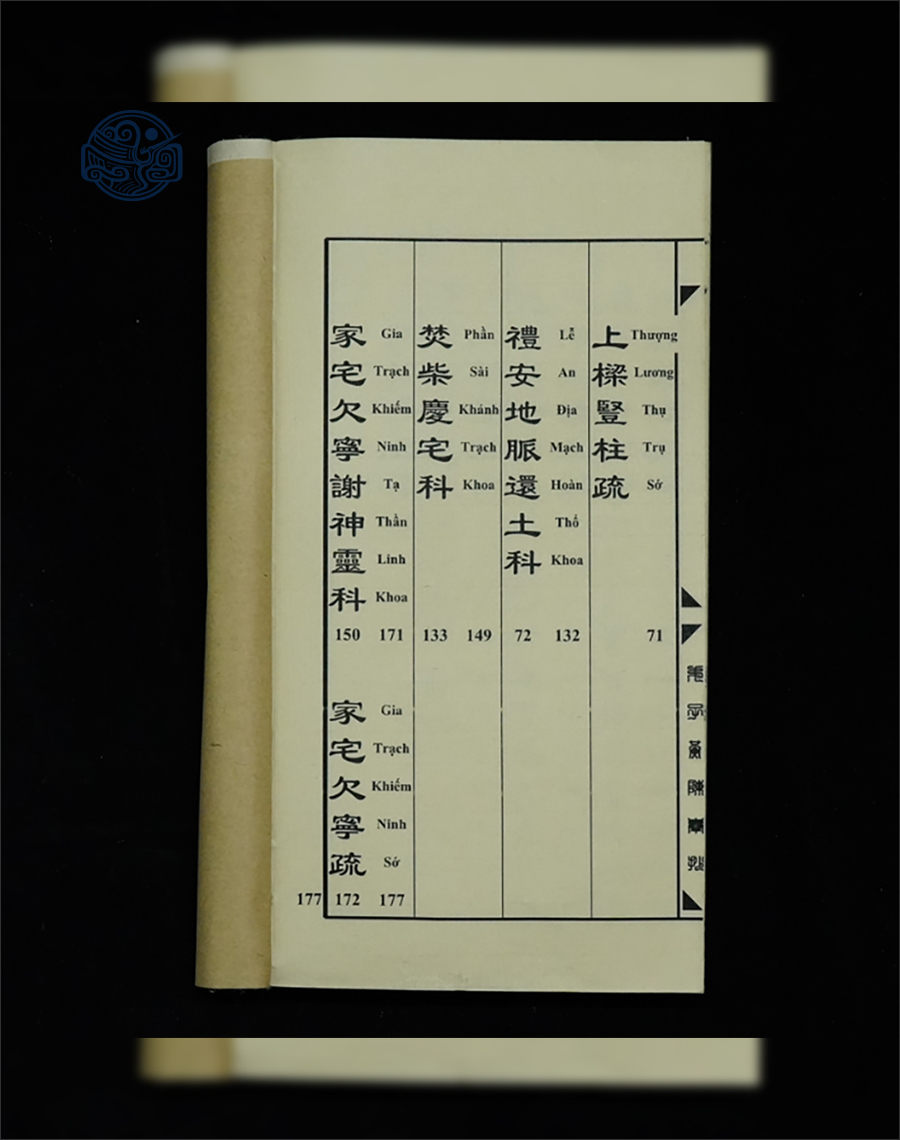 Sách dày 177 trang và được dùng trong nghi lễ động thổ, lên nhà mới bao gồm các khoa cúng và sớ: