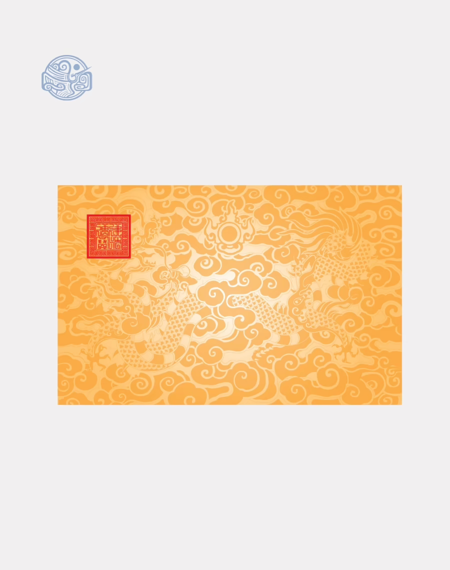 ✔️ Hoa văn rồng cổ: lấy mẫu từ sắc phong, bố cục mây rồng uyển chuyển, nền sắc vàng truyền thống – đúng tinh thần văn bản hành chính – tín ngưỡng xưa.