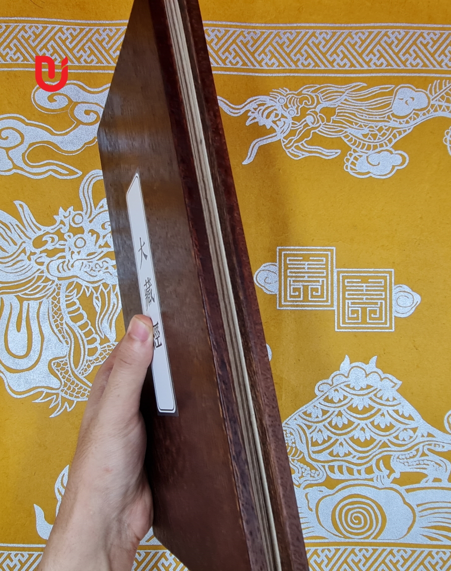 Dạng kinh xếp, bìa gỗ nhân tạo bọc sắc phong/ bọc bìa cậy.