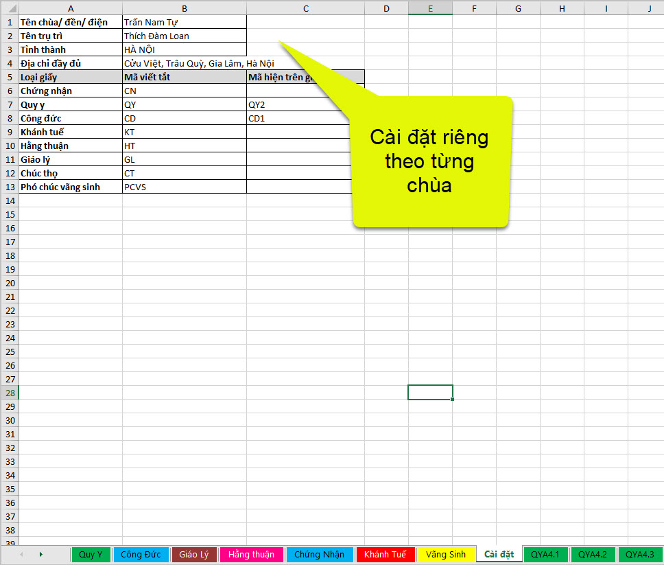 Chứa đầy đủ 7 biểu mẫu cần thiết mỗi chùa thường phải in