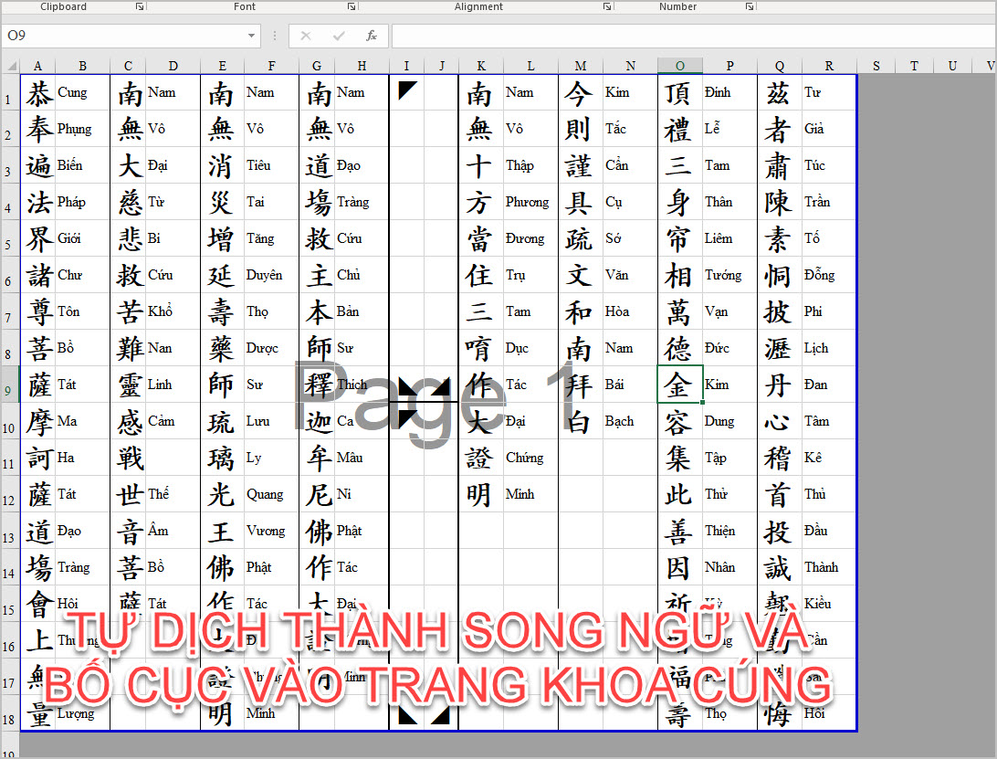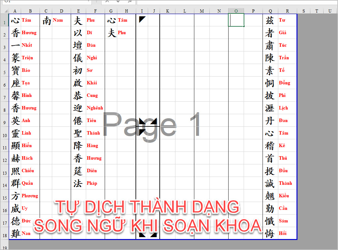 - Tự động bố cục khoa chữ Nho, Song ngữ