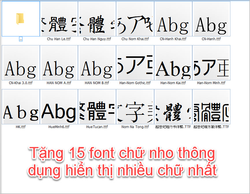 - Tặng 15 font chữ nho thông dụng hiển thị nhiều chữ nhất