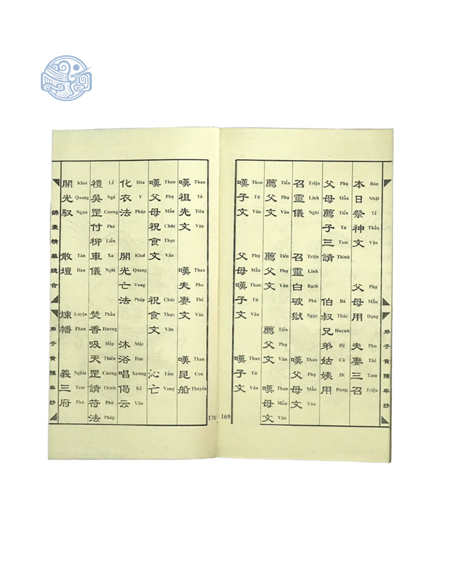 Cuốn cẩm nang bao gồm những tinh hoa được chắc lọc từ cổ nhân mà bất cứ quý thầy nào cũng nên có một cuốn. Sách bao gồm các bài than, bài chú, quyết, khai quang, đường thỉnh và khoa cúng tổng hợp: