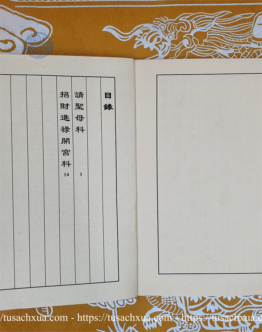 - SÁCH CÚNG CHIÊU TÀI TIẾN LỘC KHAI CUNG BAO GỒM 2 KHOA CÚNG ĐƯỢC SỬ DỤNG TRONG CÁC ĐÀN LỄ CẦU TÀI, MỞ KHAI CUNG TÀI LỘC, CẦU THĂNG QUAN TIẾN CHỨC, KHAI TRƯƠNG HỒNG PHÁT.