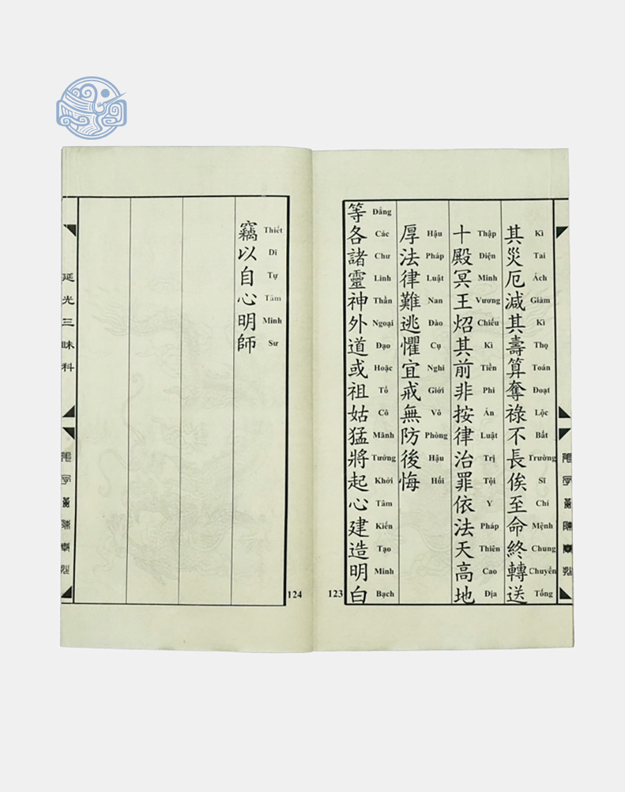 Sách được khâu thủ công theo lối cổ, giấy xuyến chỉ hoặc giấy trắng cổ gấp đôi, đọc ngược từ phải sang, khâu gáy bằng chỉ dù, quét keo, tem sách chống sước, mực in chống nước không phai màu, số lượng chỉ có vài cuốn.