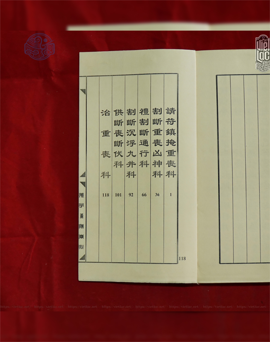 Sách bao gồm các khoa cúng được sử dụng trong các đàn lễ cắt đoạn trùng tang: