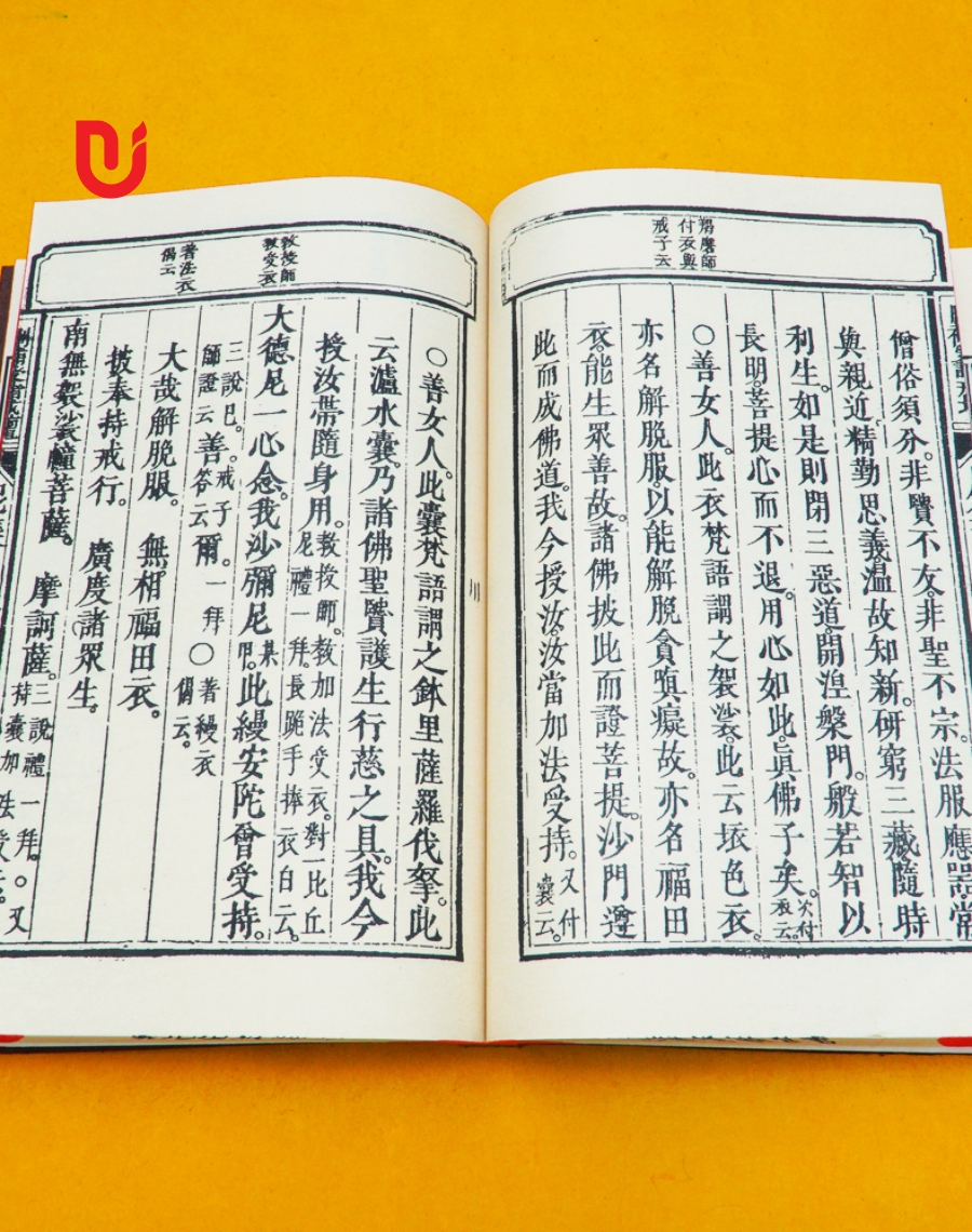 • Quy cách: Sách được khâu thủ công theo lối cổ, bìa cậy nâu, in giấy xuyến chỉ gấp đôi, đọc ngược từ phải sang, khâu gáy bằng chỉ dù, quét nâu, tem sách chống xước, mực in chống nước không phai màu.