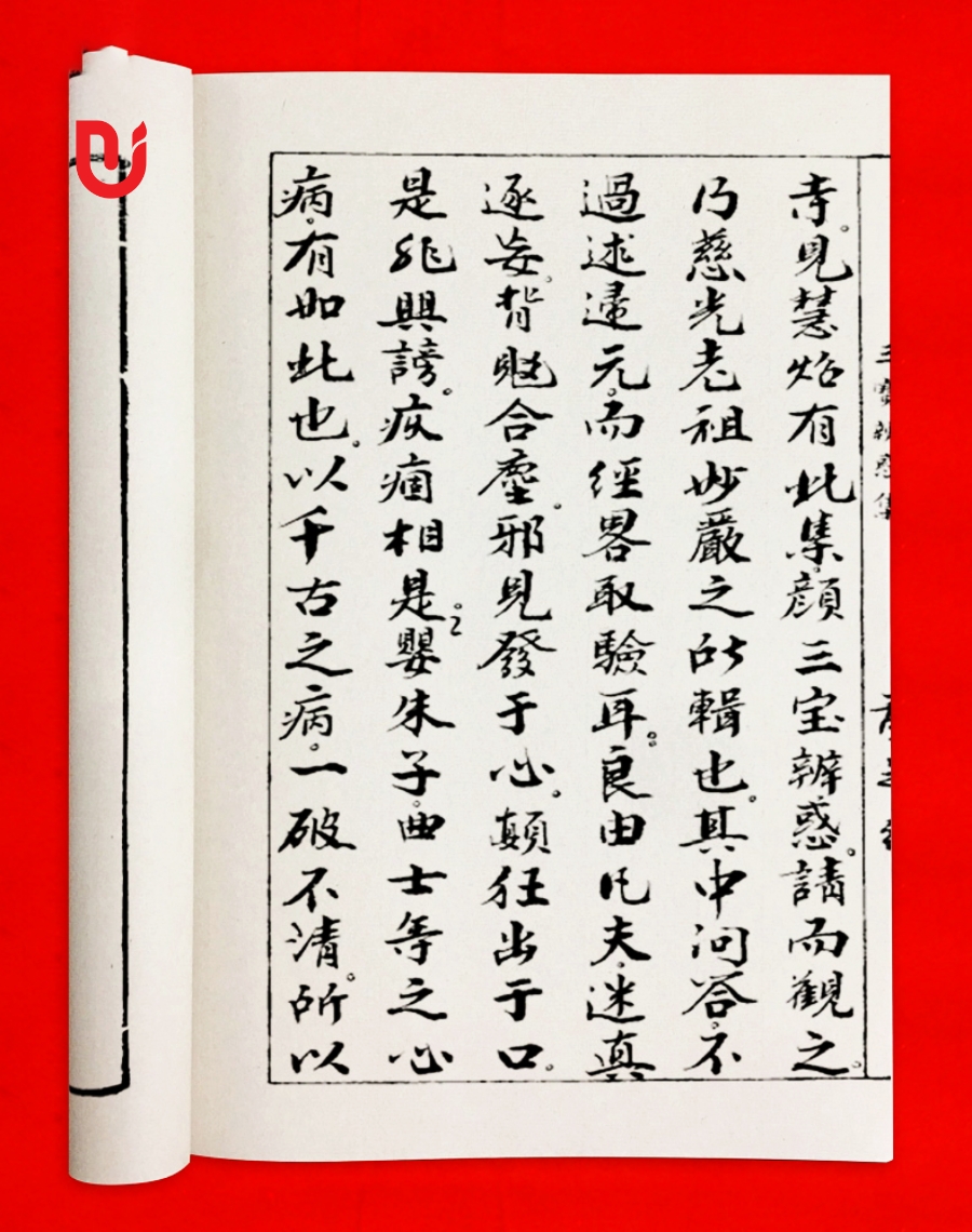 Sách được khâu thủ công theo lối cổ, bìa cậy nâu, in giấy xuyến chỉ hoặc dó gấp đôi, đọc ngược từ phải sang, khâu gáy bằng chỉ dù, quét nâu, tem sách chống xước, mực in chống nước không phai màu, số lượng chỉ có vài cuốn.