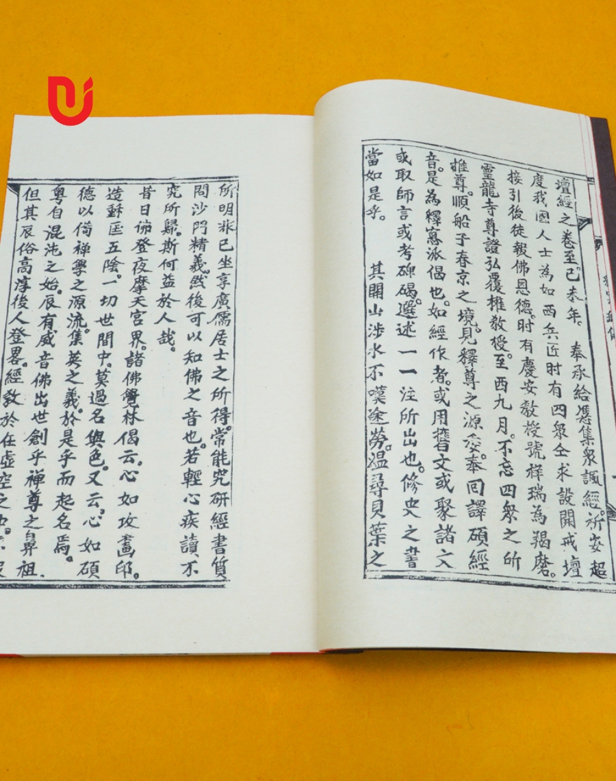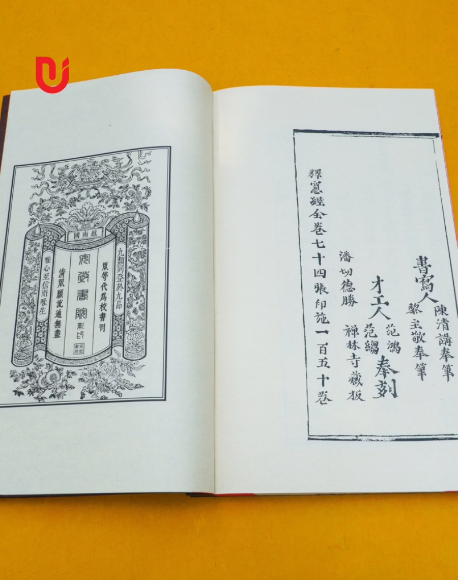 - Quy cách: Sách được khâu thủ công theo lối cổ, bìa cậy nâu, in giấy xuyến chỉ gấp đôi, đọc ngược từ phải sang, khâu gáy bằng chỉ dù, tem sách chống xước, mực in chống nước không phai màu.