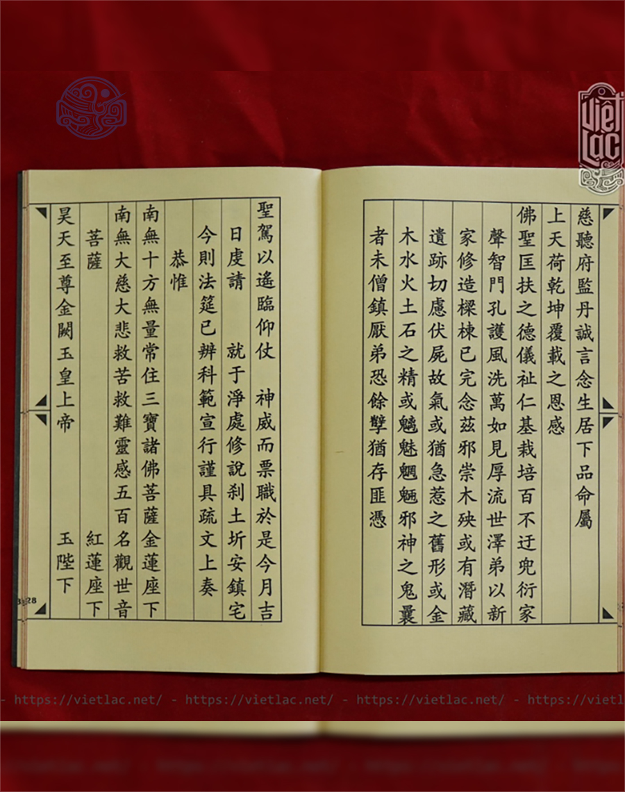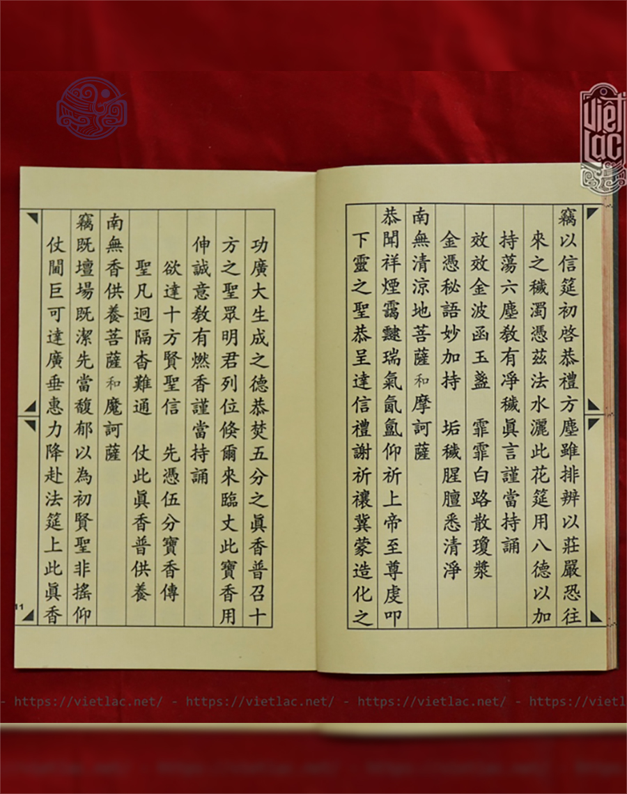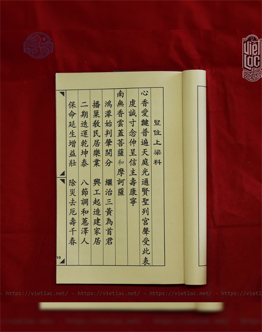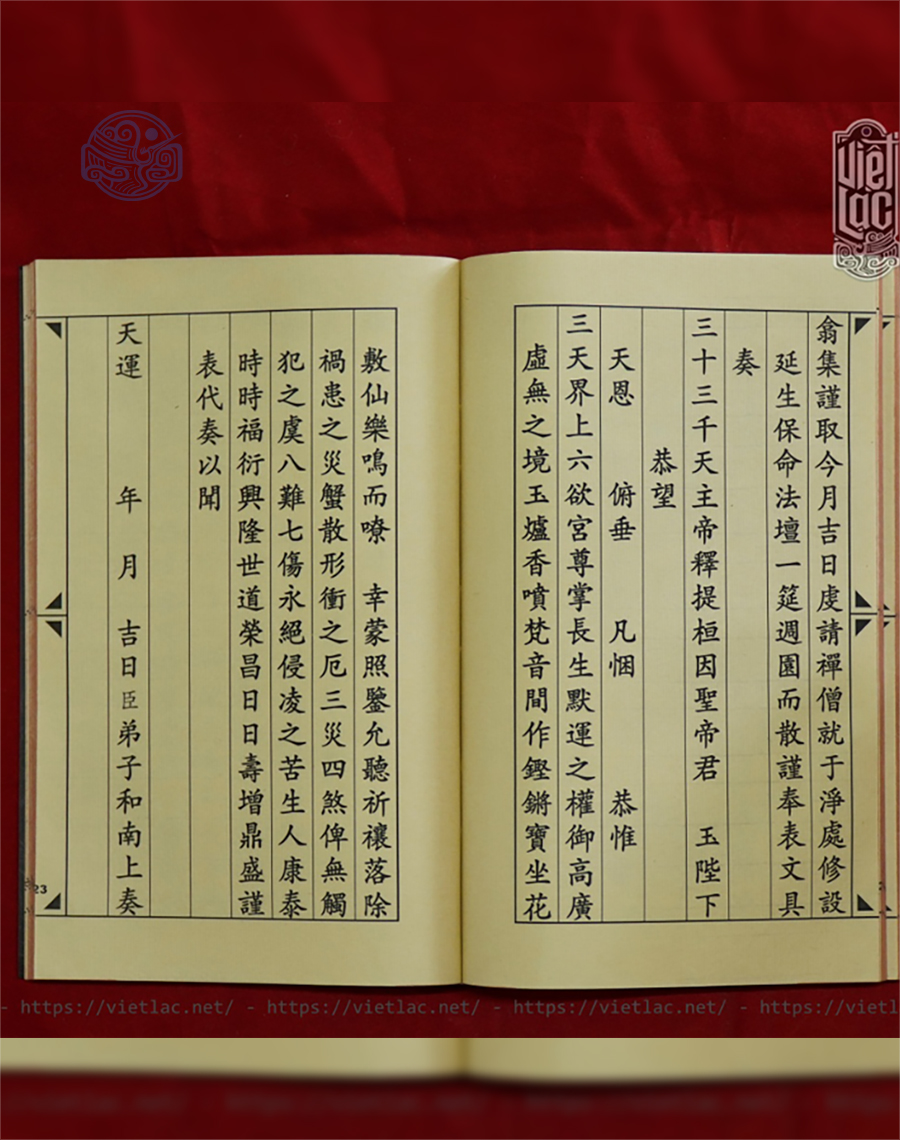 Sách được khâu thủ công theo lối cổ, giấy xuyến chỉ hoặc giấy trắng cổ gấp đôi, đọc ngược từ phải sang, khâu gáy bằng chỉ dù, quét keo, tem sách chống sước, mực in chống nước không phai màu, số lượng chỉ có vài cuốn.