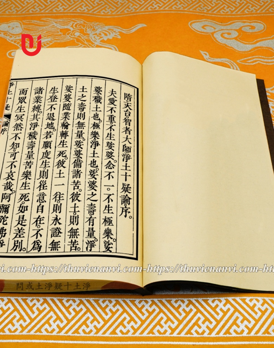 Trí Giả đại sư thấu hiểu thông suốt cương tông của đại đạo Tịnh Độ, biết đường lối để chúng sanh đạt được lợi ích to lớn “vãng sanh, đạt được thành tựu”, lợi ích do vãng sanh, và tướng đại duyên khởi của pháp môn. Do đó, Ngài dốc sức bài trừ những nỗi nghi hoặc đã tồn tại lâu dài trong lòng người từ trước đến nay. Những nỗi nghi hoặc ấy như: Có kẻ ngờ vực tiến trình theo thứ tự trên đường Bồ Đề, có kẻ ngờ vực chỗ bất đồng giữa các pháp môn theo lối thông thường [và pháp môn Tịnh Độ], có kẻ nghi hoặc giữa sự chuyên tu và phổ tu (tu theo đường lối chung, thông thường, tu phổ quát), có kẻ ngờ phàm phu có thể vãng sanh hay không, làm thế nào để vãng sanh v.v… Do bộ luận này [mà người đọc] giống như nhà tối ngàn năm bỗng được ánh nắng chiếu vào. Chúng ta học tập bộ luận này, sẽ phát hiện: Mỗi chỗ đều đủ sức đoạn nghi, sanh tín, trọn đủ rốt ráo những luận thuyết chính đáng đầy sức thuyết phục. Sau khi đã phá trừ mười mối nghi, những mối nghi vốn cao ngất trong tâm đều triệt để sụp đổ; từ đó, sẽ thấy rõ đại đạo Tịnh Độ, kiến lập cơ sở tín nguyện trong tâm. Vì thế, đây là giáo điển căn bản của Tịnh Độ vậy.