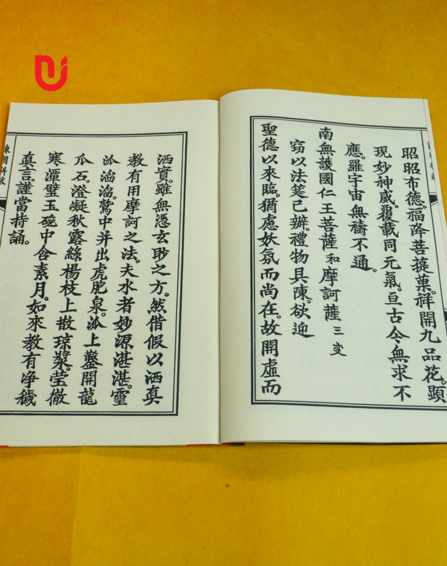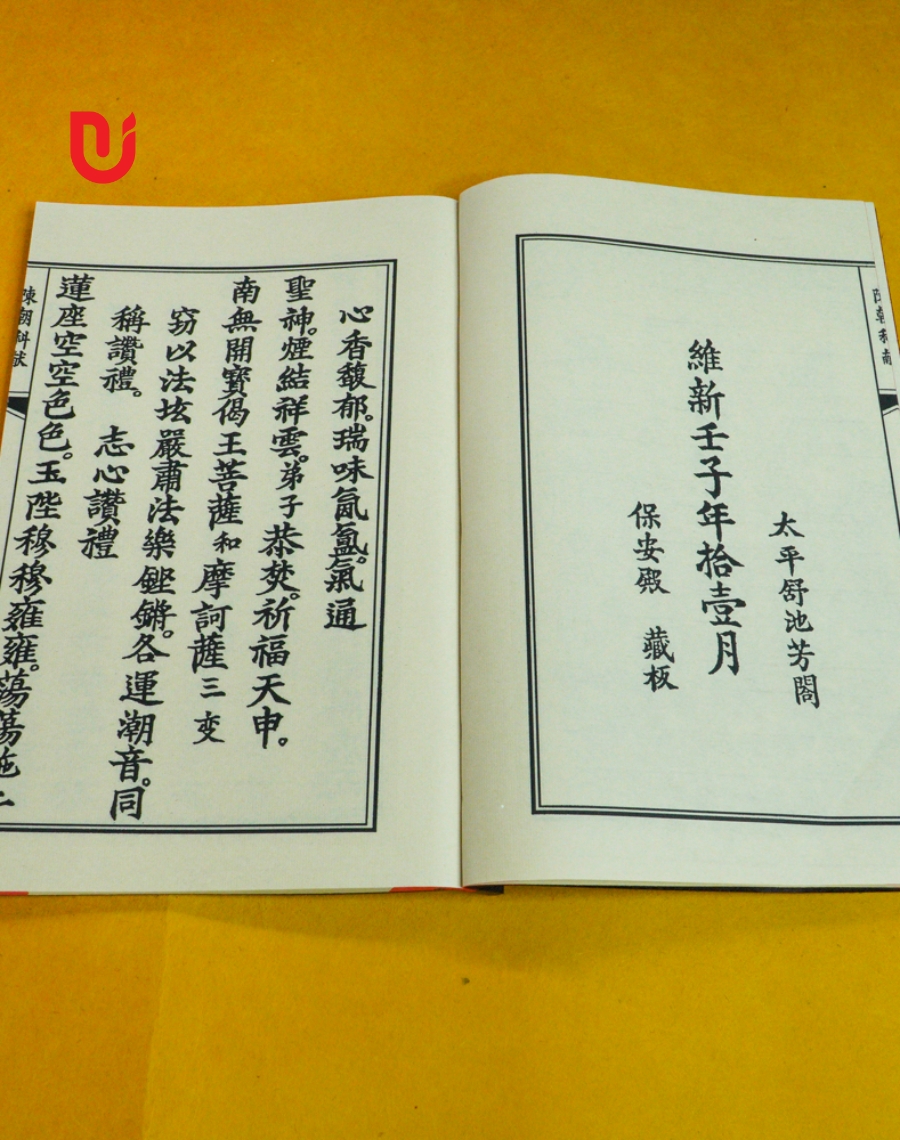 - Quy cách: Sách được khâu thủ công theo lối cổ, bìa cậy nâu, in giấy xuyến chỉ gấp đôi, đọc ngược từ phải sang, khâu gáy bằng chỉ dù, quét nâu, tem sách chống xước, mực in chống nước không phai màu.