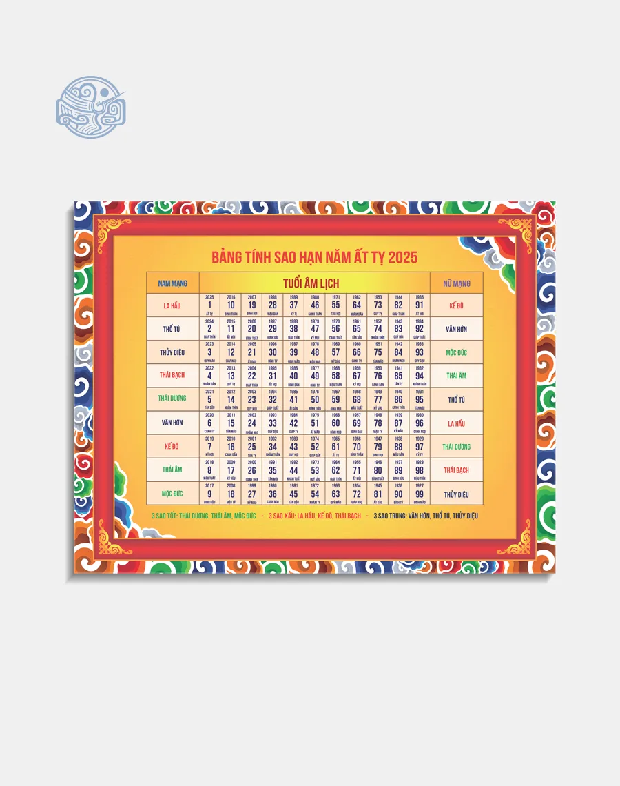 Bảng tính sao hạn năm Ất Tỵ 2025