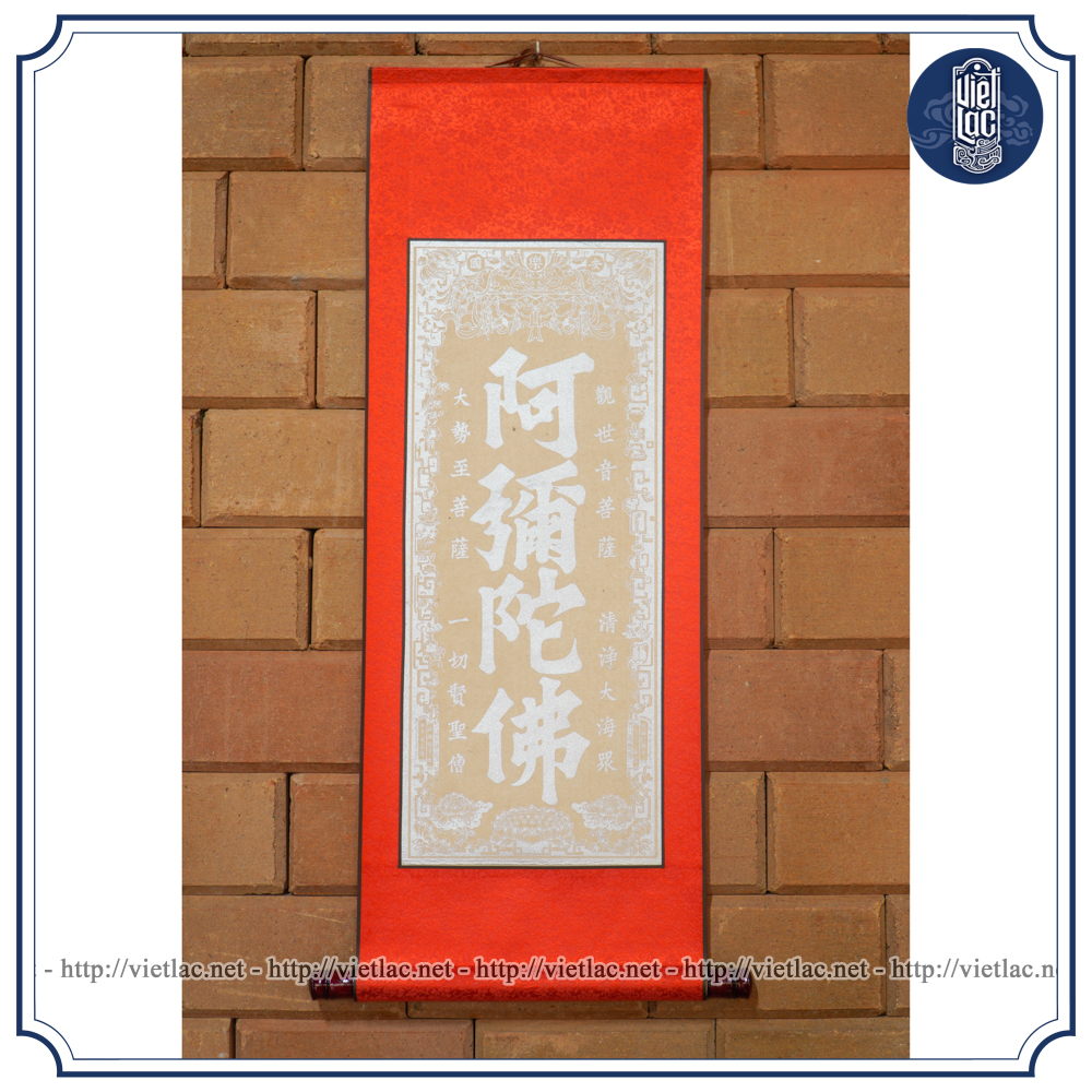 – Hồng danh A DI DÀ PHẬT có mẫu chữ (& đồ án trang trí bộ sậu xung quanh) giống nhau, như cùng một khuôn mang niên đại Nguyễn. Chỉ không rõ nguồn từ đâu? Cái nào khắc/dấn/đục trước? Tác giả viết là ai?