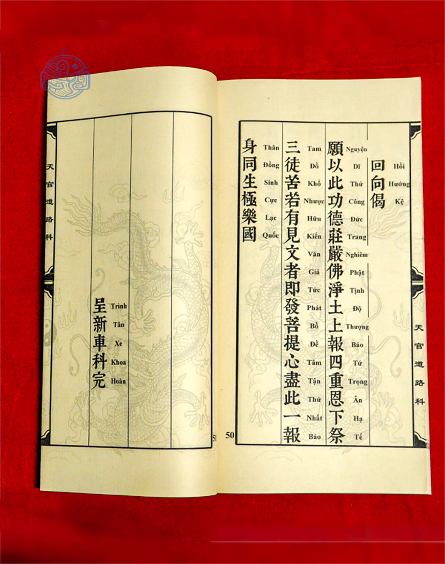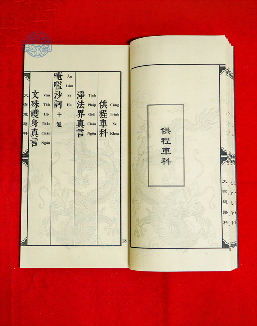 Sách được dùng trong các đàn lễ cúng xe mới, cầu bình an thiên quan đạo lộ, bao gồm các khoa cúng: