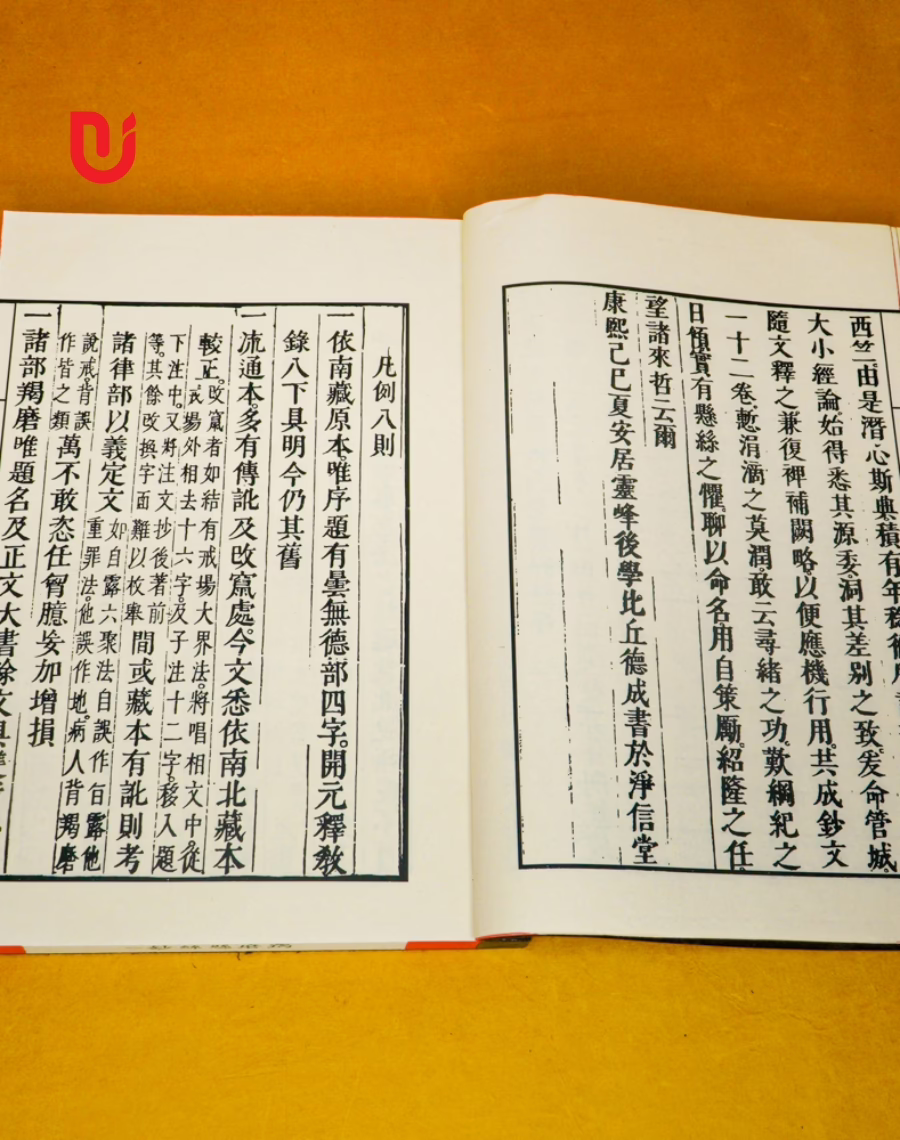 • Quy cách: Sách được khâu thủ công theo lối cổ, bìa cậy nâu, in giấy xuyến chỉ gấp đôi, đọc ngược từ phải sang, khâu gáy bằng chỉ dù, quét nâu, tem sách chống xước, mực in chống nước không phai màu.
