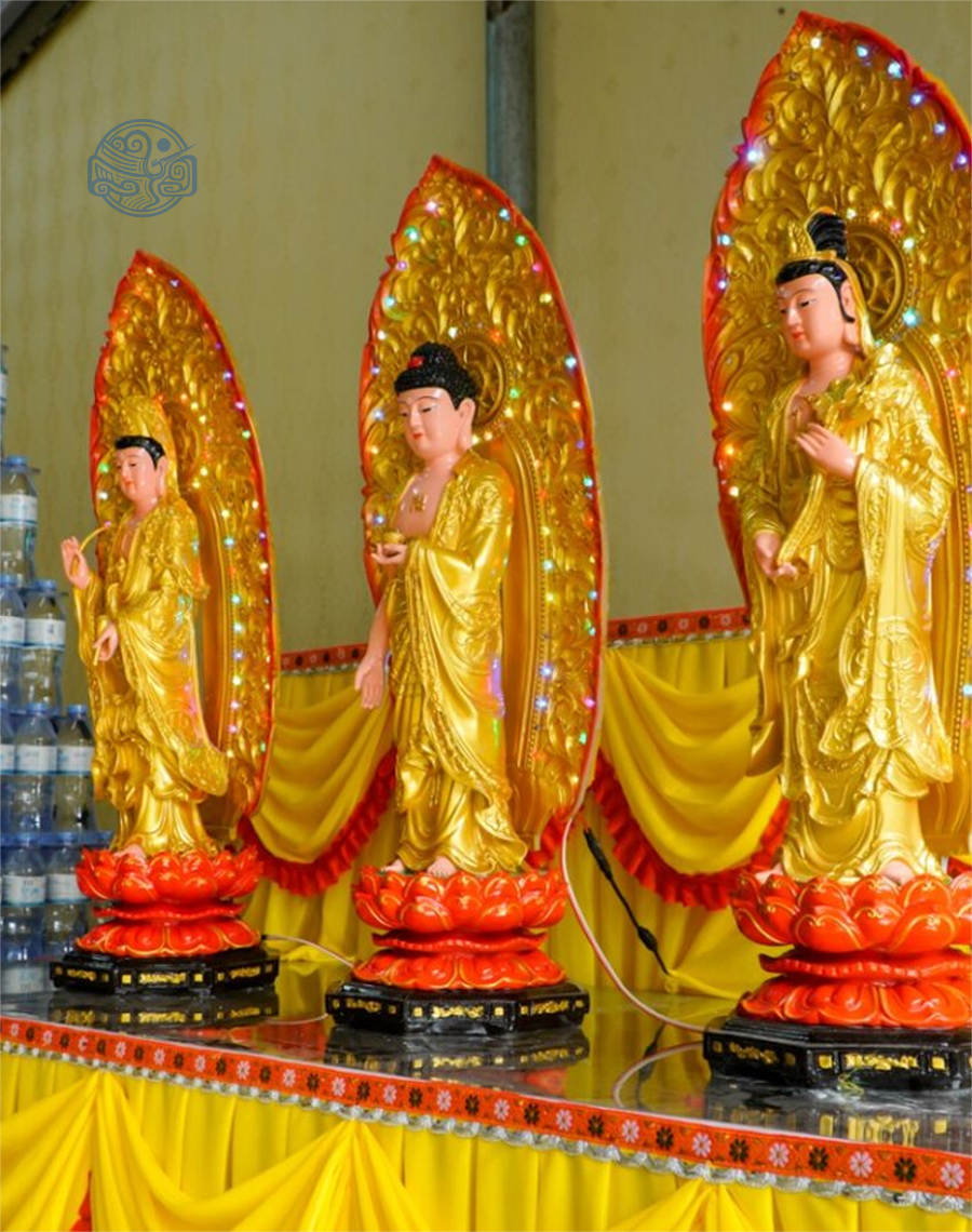 Một số hình ảnh bộ Tượng Tây Phương Tam Thánh Đứng Bằng Composite, Cao 80cm (Có lá đề và đèn led)